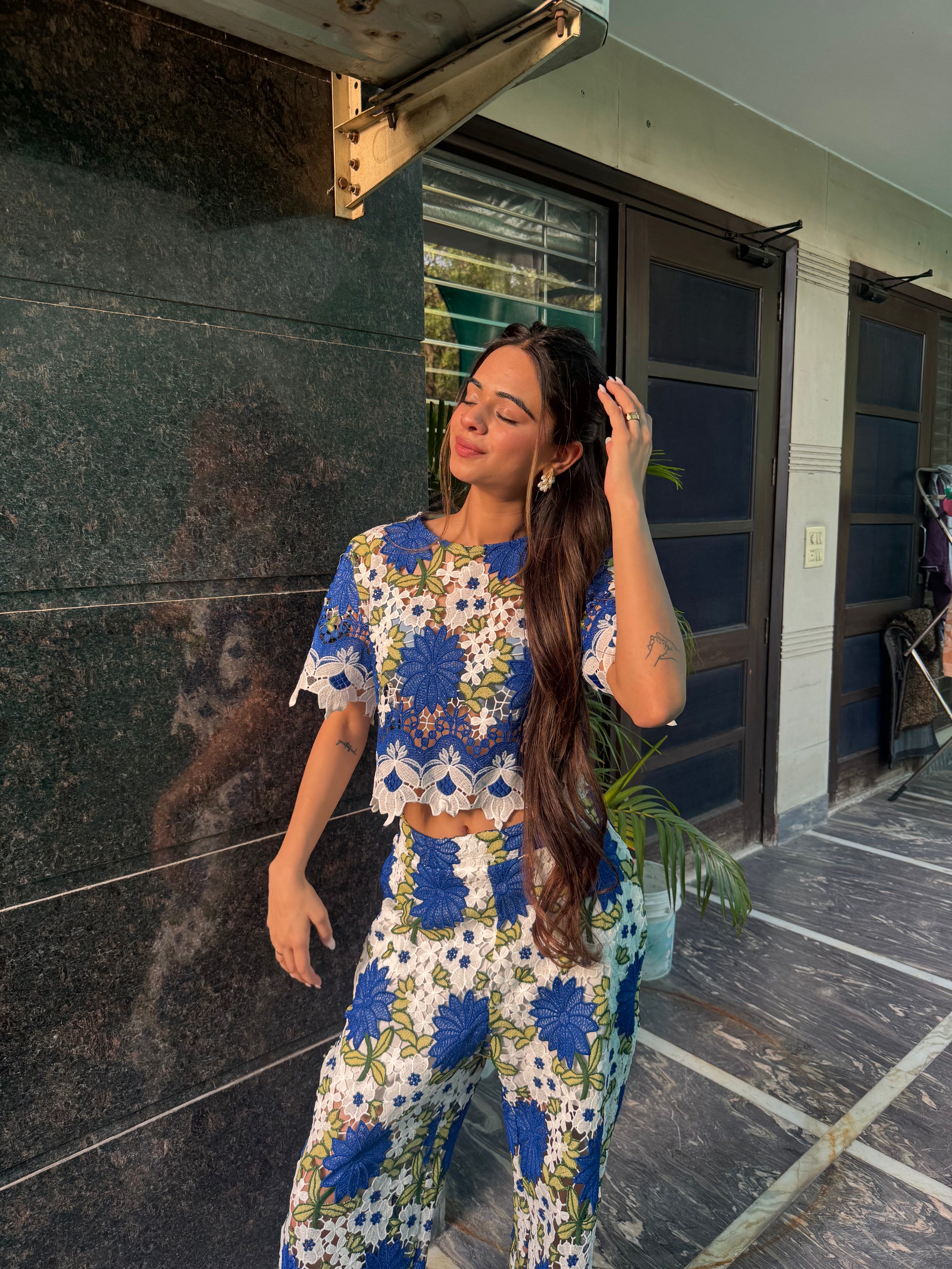Bluemaze - 2 piece Floral Crochet Co-ord Set