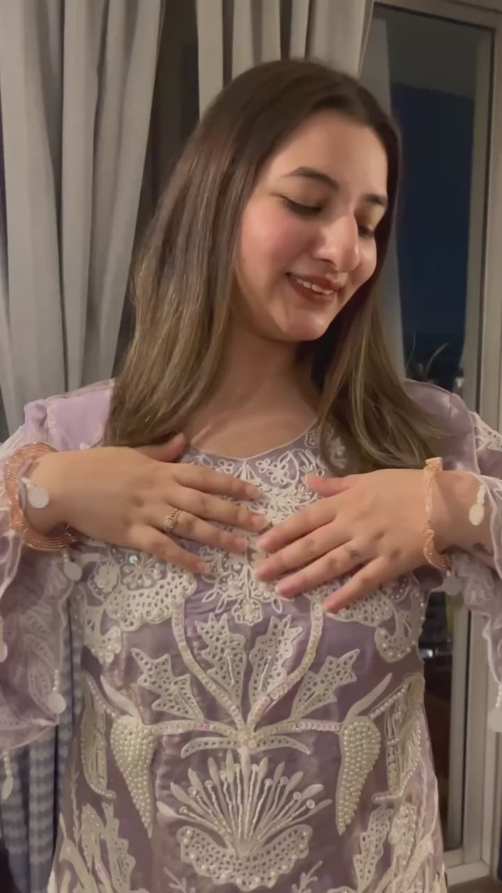 Grace meets glamour in this exquisite lilac cord set, crafted from luxe shimmer organza. The top is intricately embroidered with ivory threadwork and sequins, finished with delicate scalloped edges and tassel accents. Paired with sleek straight-fit pants in the same luminous fabric, this two-piece ensemble radiates elegance with every step. A perfect pick for festive evenings, celebrations, or when you simply want to stand out.
