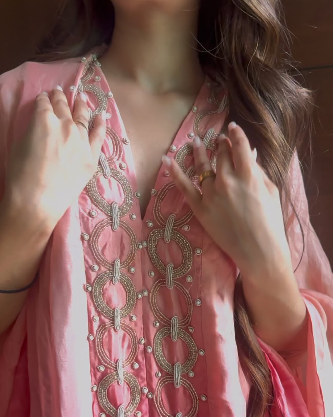 Serving major VIBE this season – effortless, chic, and made to turn heads. This chic cord set features intricate handwork detailing, making it a statement you can wear anywhere. From casual glam to street chic — this one does it all. Whether it’s brunch, a coffee run, or a casual day out this set speaks for itself. Comes with a coordinated top and straight pants for a flattering, easygoing silhouette.